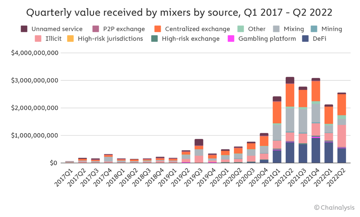 “Mixers may soon become obsolete as Chainalysis continues to refine the ability to demix certain mixing transactions and see users’ original source of funds. But for the time being, our data shows that mixers are receiving more cryptocurrency than ever in 2022.”