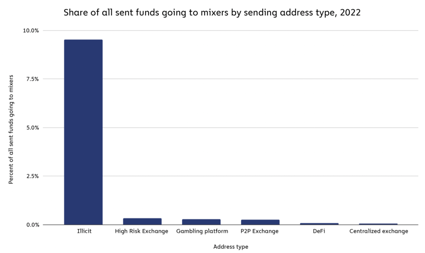 According to the numbers, nearly 10% of all funds sent to mixers come from illicit addresses, while the lawful ones are less than 0.3%.