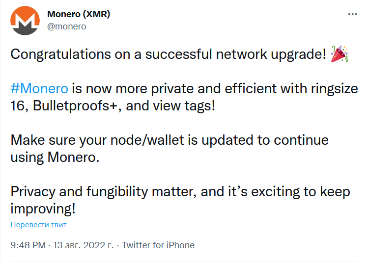 В сети проекта Monero (XMR) произошел хардфорк, направленный на улучшение функций конфиденциальности и приватности протокола.