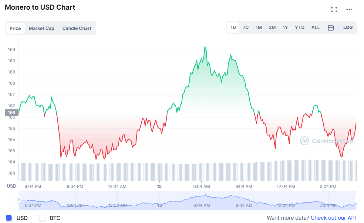 Впрочем, курс XMR – нативного коина проекта – не отреагировал на эти новости. На момент написания он торговался в районе $165.62, как с внутридневным, так и с внутринедельным понижением.