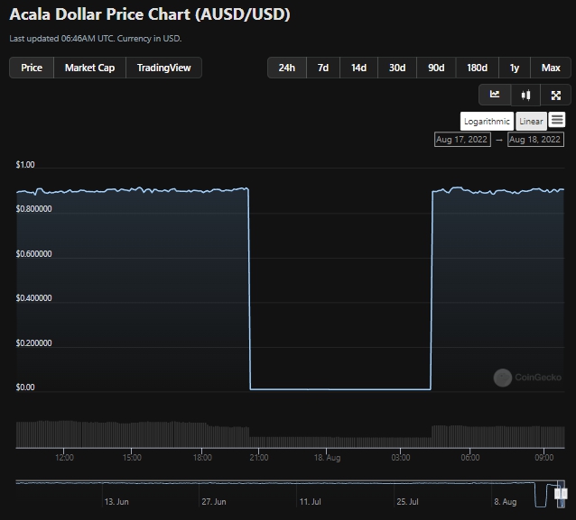 На момент написания привязанный к доллару США стейблкоин aUSD торгуется на уровне около $0,9. После инцидента с чеканкой миллиардов дополнительных монет цена актива опускалась ниже цента.