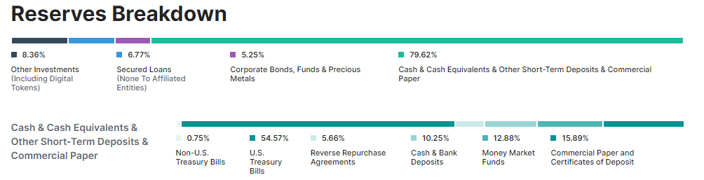 79,62% резервов USDT обеспечены денежными средствами, их эквивалентами, другими краткосрочными депозитами и коммерческими бумагами.