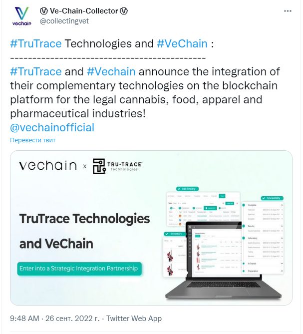 В данном случае шансы на рост токена подкрепляются новым сотрудничеством VeChain с канадской компанией TruTrace, которая специализируется на предоставлении программного обеспечения как услуги.