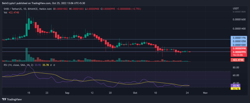 В случае бычьего разворота коин может нацелиться на отметку $0.0000110.
