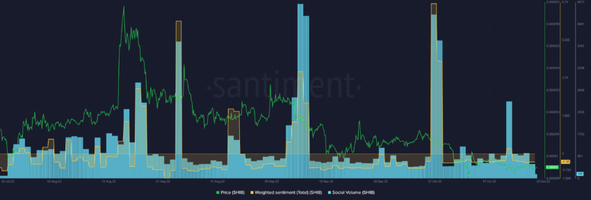 Между тем курс SHIB продолжает топтаться в узком диапазоне вблизи отметки $0.0000100, не реагируя на новости о сокращении объема предложения монеты. Согласно данным CoinMarketCap, торговые объемы коином за 24 часа составляли порядка $111 млн, просев на 8,23% по сравнению с предыдущим днем. Показатели интереса к SHIB на социальных платформах остаются негативными. Объемы социальной активности также колеблются на низких уровнях.
