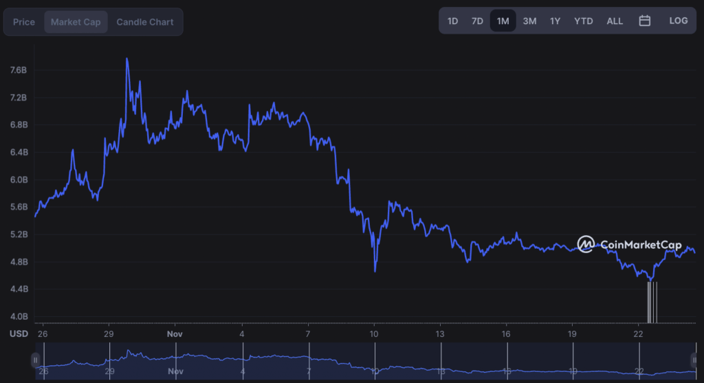 График рыночной капитализации SHIB за месяц. Источник: CoinMarketCap