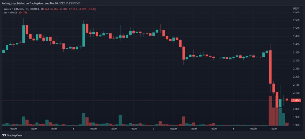 За последние 24 часа котировки WAVES обвалились на 12%. На момент написания актив торгуется вблизи $2.