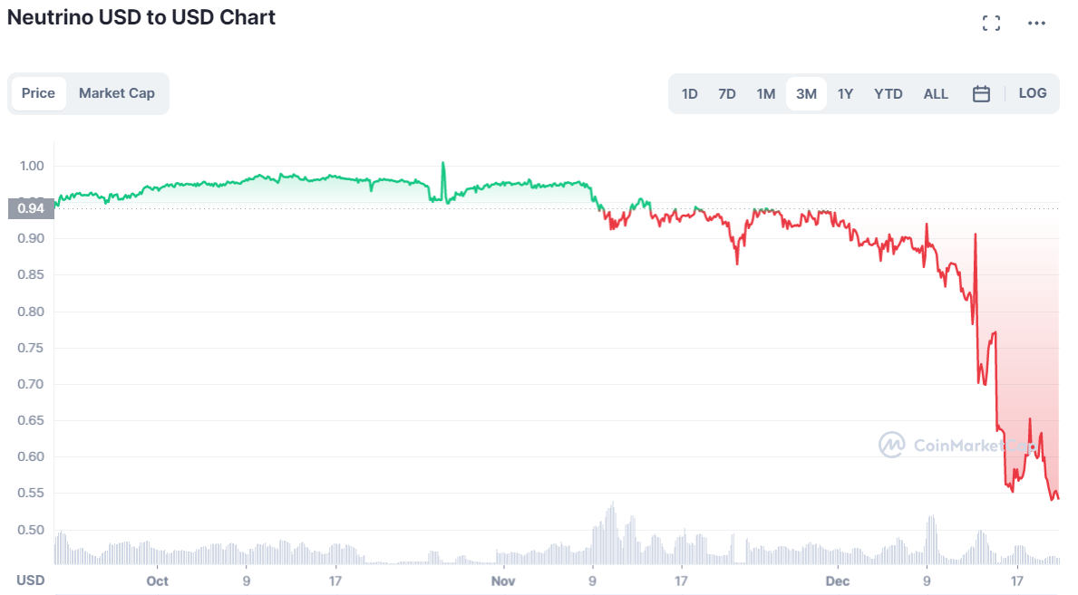 После этого заявления стоимость USDN рухнула до $0,55.