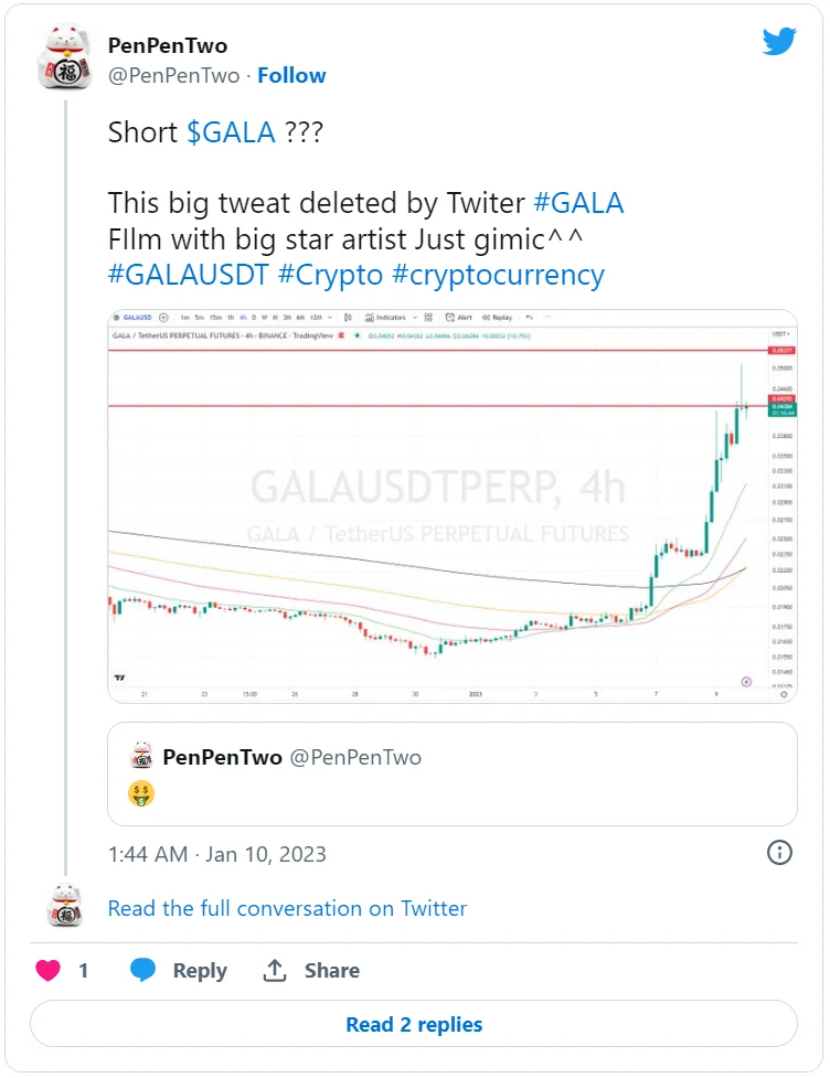 Вскоре после анонса игровая студия удалила твит без объяснения причин. В CoinDesk попытались связаться с представителями компании, однако не получили ответа. Некоторые пользователи Twitter поставили под сомнение подлинность новости о сотрудничестве со звездами и призвали сообщество к открытию коротких позиций (шортов) на бирже в отношении токена GALA.