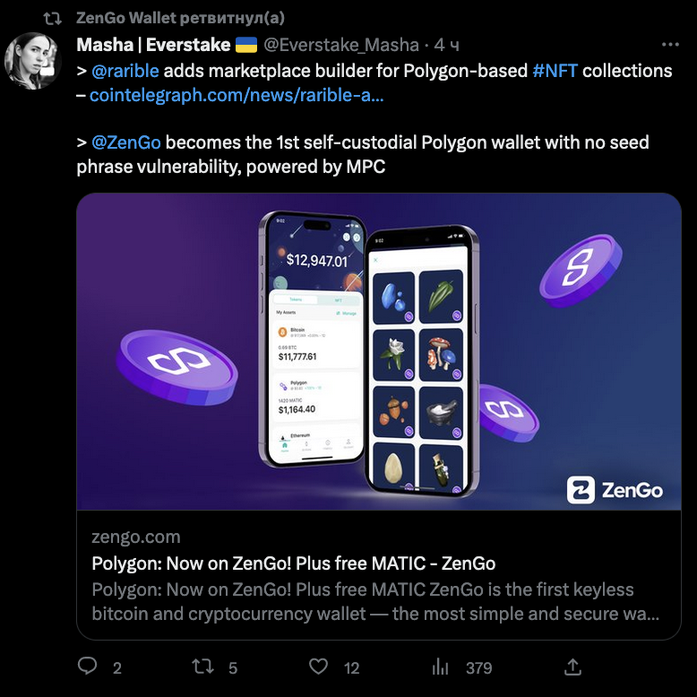 Поводом для роста рыночной капитализации Polygon можно назвать, в частности, соглашение о партнерстве, заключенное командой проекта с сервисом ZenGo Wallet. В результате этого пользователи Polygon смогут безопасно хранить в этом кошельке свои NFT.