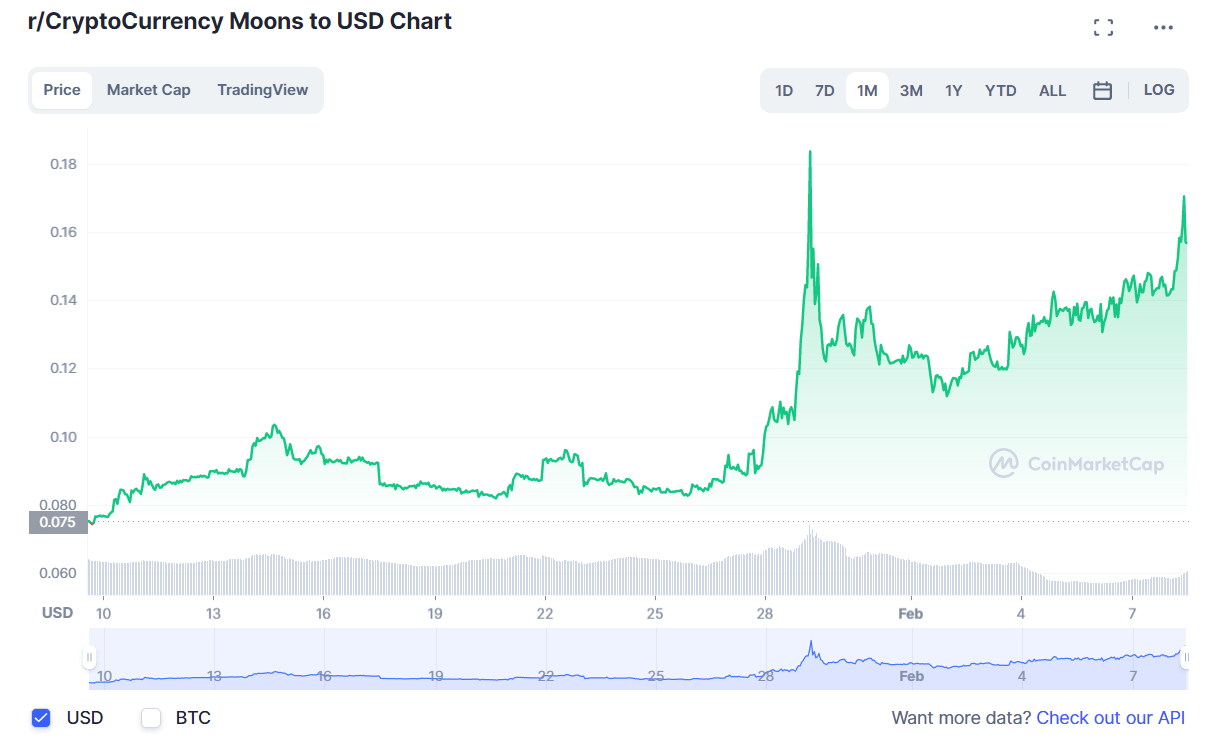 Токены MOON, запущенные создателями сабреддита r/Cryptocurrency на популярной социальной контент-платформе Reddit, были задуманы как инструмент для поощрения пользователей за создание различного контента. Запуск криптовалюты состоялся в мае 2020 года на базе сабреддита r/Cryptocurrency, который считается одним из крупнейших и наиболее активных криптовалютных онлайн-сообществ.