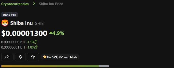 Цена Shiba Inu (SHIB) отреагировала сдержанно, прибавив за 24 часа около 5%.