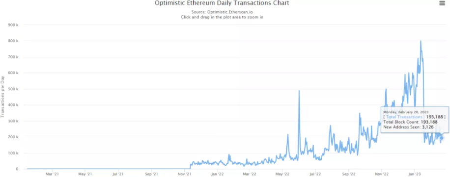 Показатель Optimism, ближайшего конкурента Arbitrum, находится на гораздо более низких значениях.