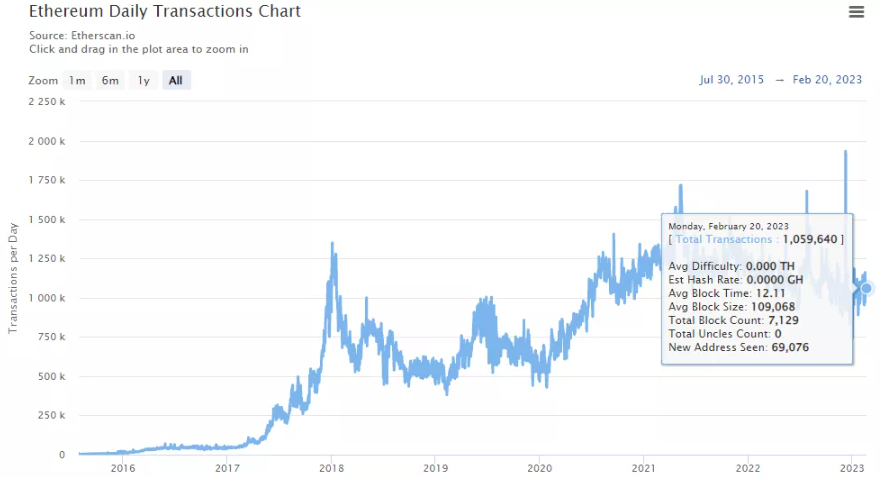 Для сравнения, суточное число транзакций в сети Ethereum довольно продолжительное время находится у отметки в 1 млн.