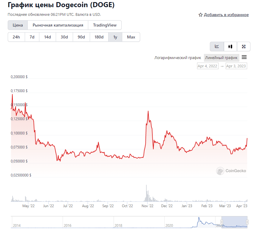 Рыночная капитализация Dogecoin. Источник: CoinGecko