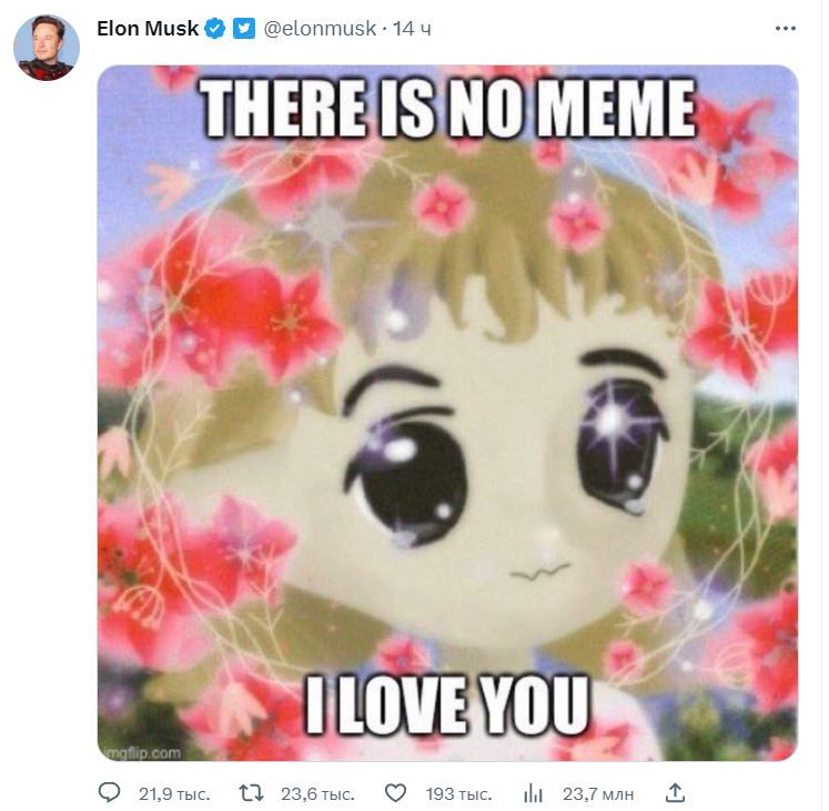 В Твиттере Илона Маска появился пост с изображением персонажа Milady — маскота мемного криптопроекта Milady Meme Coin, который выпустил криптовалюту LADYS.