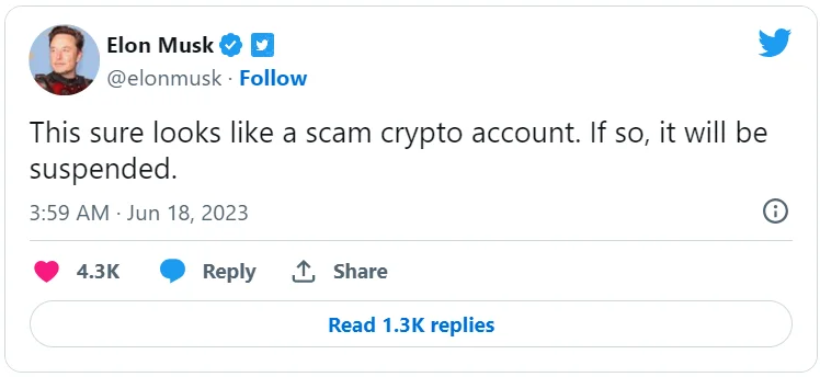 Маск заявил, что Twitter будет блокировать аккаунты, которые «обходят систему верификации и пиарятся или рекламируются вводящим в заблуждение способом».