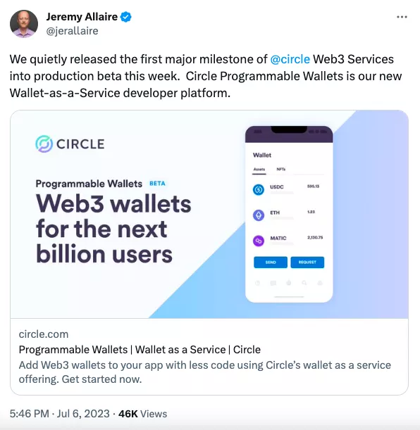 Соэмитент USDC компания Circle запустила платформу «кошелек как услуга» для разработчиков Web3-приложений.