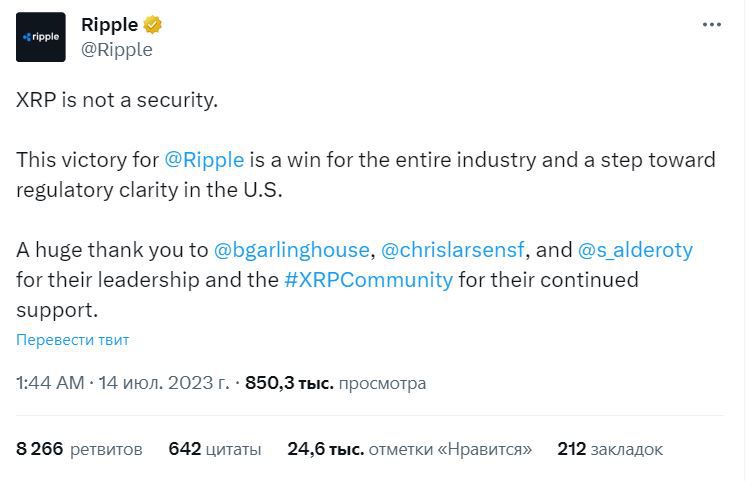 Нашлись и те, кого победа Ripple над SEC не тронула.