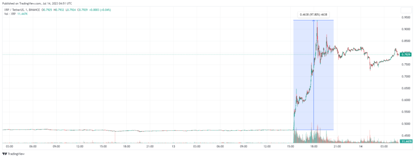 13 июля 2023 года произошло знаменательное событие для криптосообщества — популярный калифорнийский криптопроект Ripple победил Комиссию по ценным бумагам и биржам США (SEC) в суде. Напомним, регулятор обвинял компанию в незаконном выпуске ценных бумаг в виде токенов $XRP. Разбирательство длилось с декабря 2020 года. Рассказываем, как крипторынок отреагировал на победу Ripple над SEC