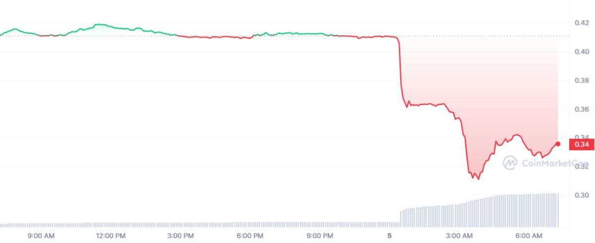 Сотрудники исследовательской компании Lookonchain сообщили, что вскоре после полуночи по Москве неизвестный кит обменял 9 млн SYN на стейблкоины USD Coin (USDC) на сумму $ 2,34 млн, продав токены по заниженному курсу $ 0,26. После совершения этой сделки цена Synapse упала на 24% до $ 0,31.