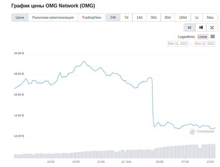 По данным Coingecko, на текущий момент цена OMG продолжает колебаться около $ 12,96.