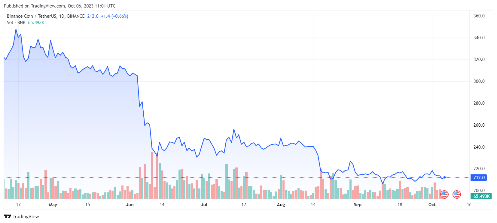 Binance Coin ($BNB) за неделю потерял в стоимости около 2,5%. Капитализация альткоина сократилась до $32,69 млрд.
