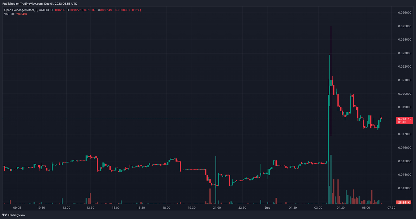 Нативная монета торговой платформы OPNX — Open Exchange (OX) — выросла на 60% после предполагаемого освобождения соучредителя компании Су Чжу.