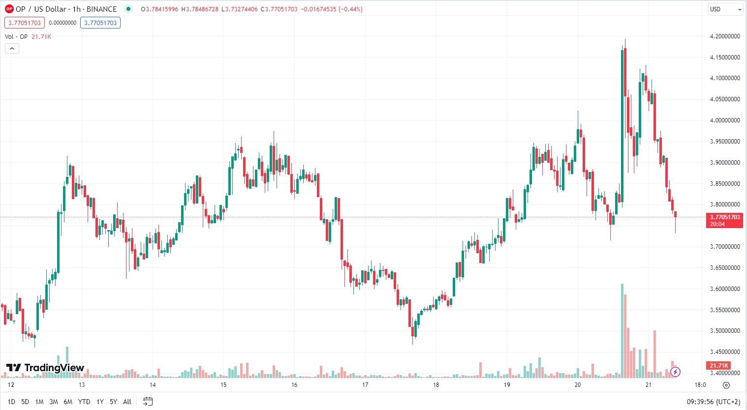 На фоне новости о распределении наград токен OP снизился примерно на 6% за последние 24 часа. На момент публикации актив торгуется вблизи $3,77, согласно TradingView.
