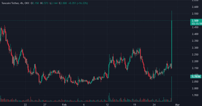 Отметим, на фоне этой новости монета $TON выросла на около 15%. На момент написания актив торгуется вблизи $2,5: