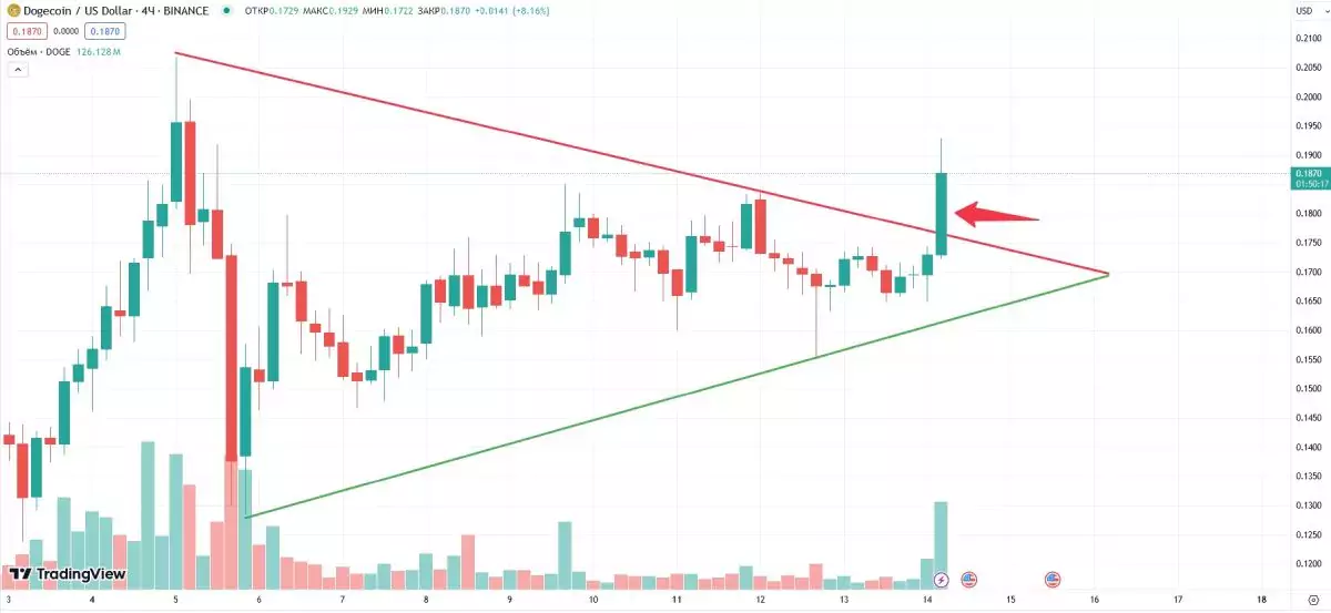 Пробитие сокращающегося треугольника на графике Dogecoin