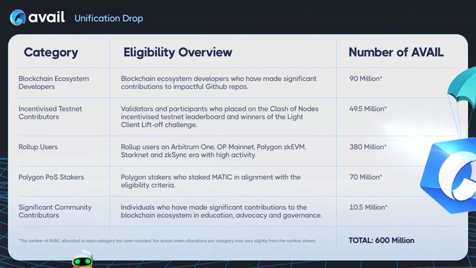 Раздача не распространяется исключительно на пользователей экосистем Avail и Polygon.