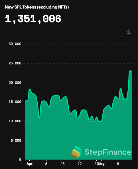 Согласно аналитической платформе Step Finance, с начала апреля на Solana создано 643 227 новых токенов.