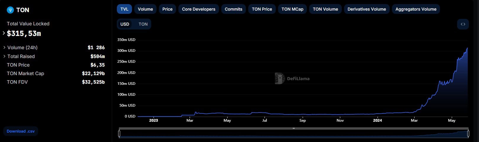 - 27 мая TVL сети TON впервые достиг $315 млн.