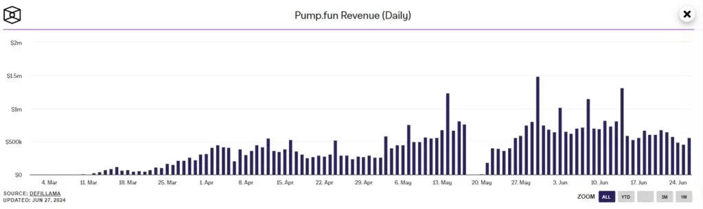 Последние два месяца Pump.fun приносила в среднем 35% общего комиссионного дохода Solana. Цифра не включает сборы от сторонних DEX и других торговых сервисов от операций с запущенными на платформе токенами.