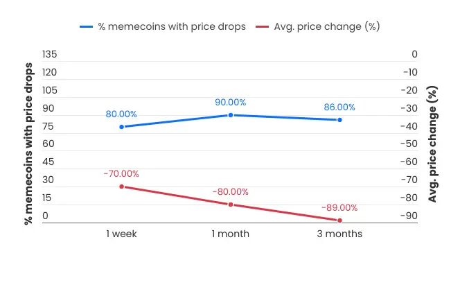 «Инфлюенсеры с более чем 200 000 подписчиков, как правило, показывают худшие результаты. Их монеты приносят убытки: 39% после одной недели и 89% — после трех месяцев. У аккаунтов с менее 50 000 подписчиков 25% рекламируемых мемкоинов показали доходность через неделю, а 141% — через три месяца. Только 1% рекламируемых токенов продемонстрировал десятикратный рост», — указано в отчете.