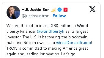 Но теперь криптовалютный миллиардер китайского происхождения Джастин Сан придал ей значительный импульс, купив WLFI на сумму 30 миллионов долларов.