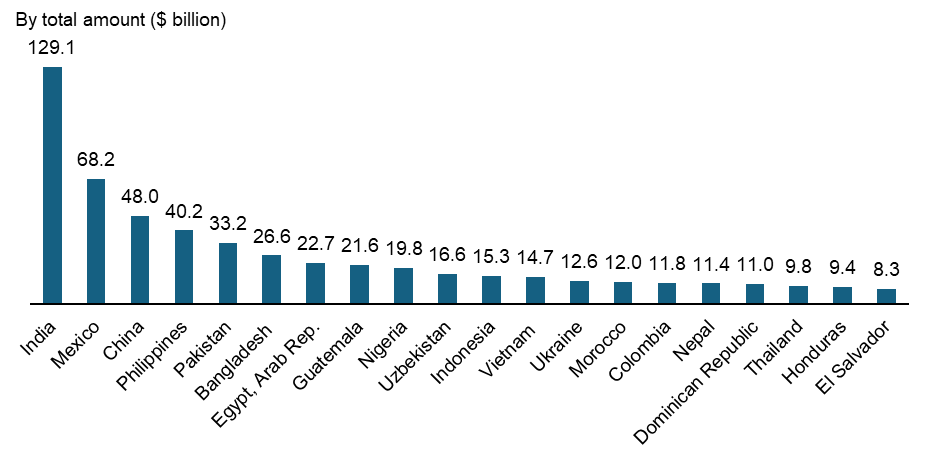Основные получатели денежных переводов среди стран с низким и средним уровнем дохода в % от ВВП, 2024e. Источник: Всемирный банк.
