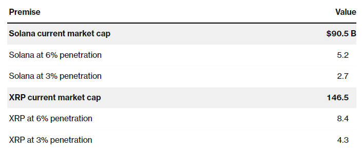 Аналитики JPMorgan уверены, что спрос на Solana- и XRP-ETF будет высоким. Объем первого может достичь от $6 до $8 млрд в первые полгода или год, а второго — от $3 до $6 млрд за тот же период.