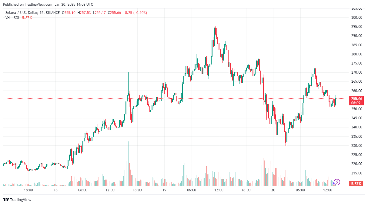 18 января цена SOL обновила исторический максимум на отметке $270, а на следующий день установила новый рекорд около $295. На момент написания монета торгуется около $255,6 при капитализации $124,18 млрд.