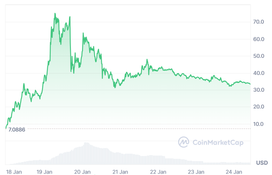 Потери только усилились, и теперь $TRUMP оценивается примерно в $33, согласно CoinMarketCap.