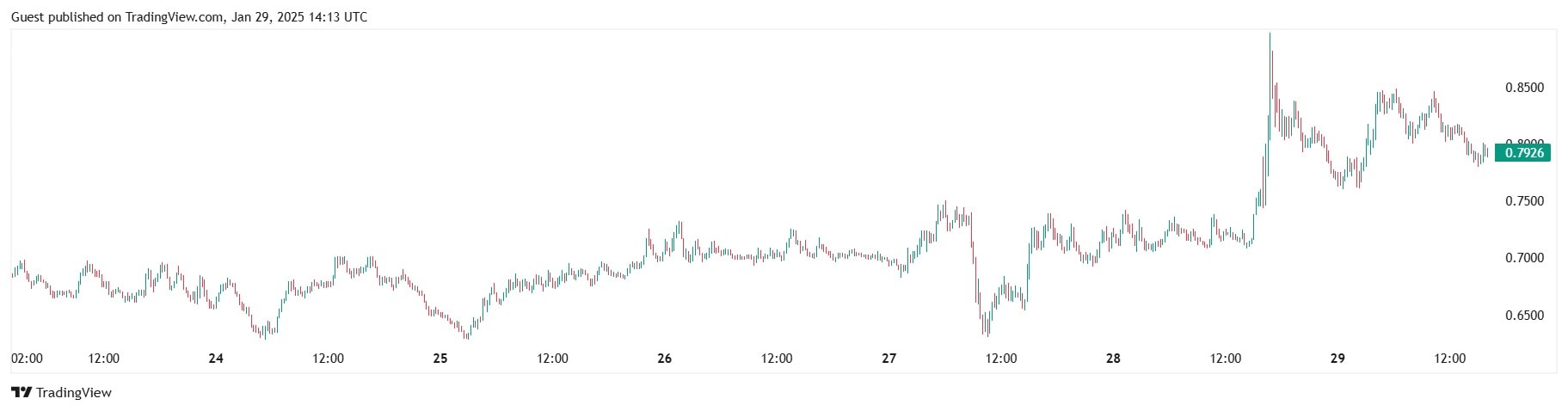 На момент написания MOVE торгуется по $0,79. На недельном чарте прирост составляет 12,2%. Локальный максимум — $0,89: