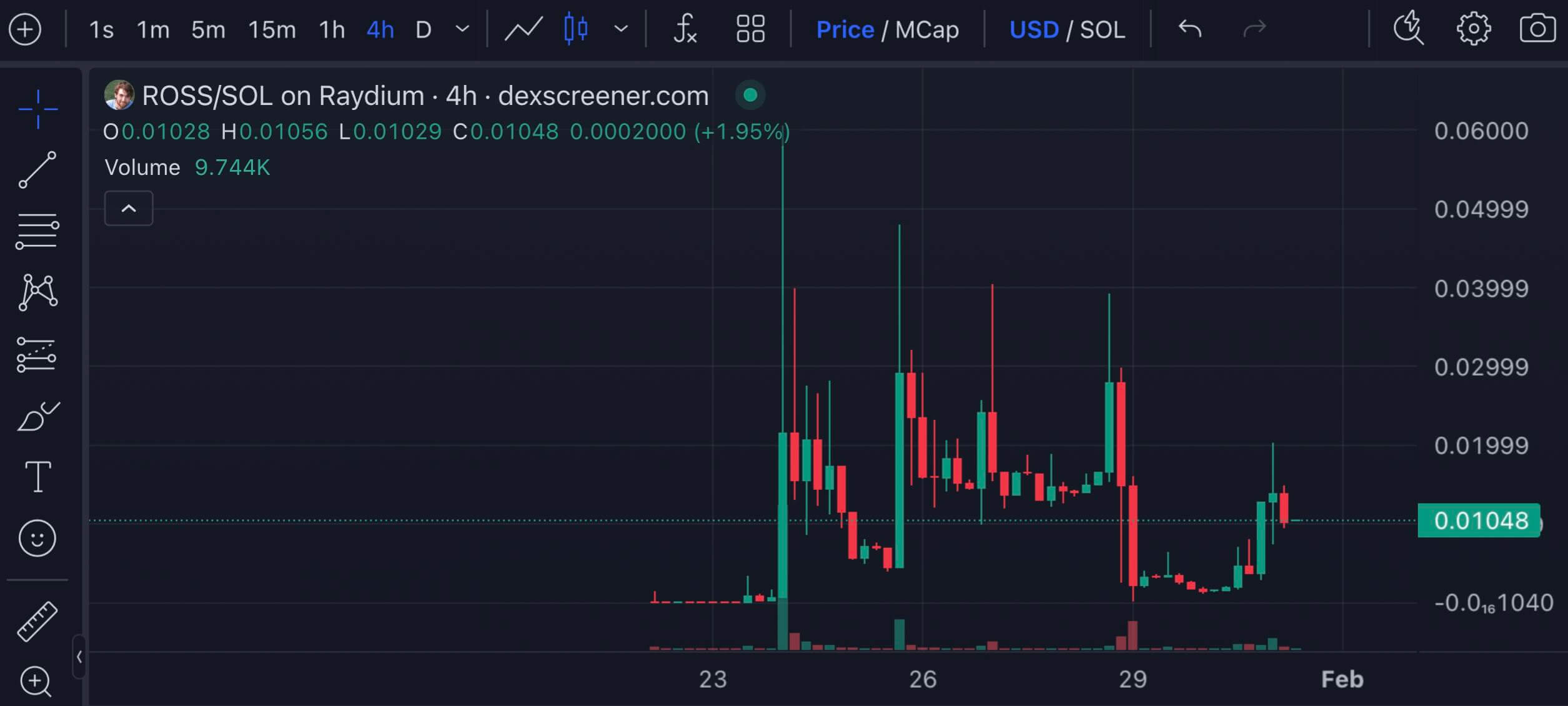 Четырёхчасовой график мем-токена ROSS