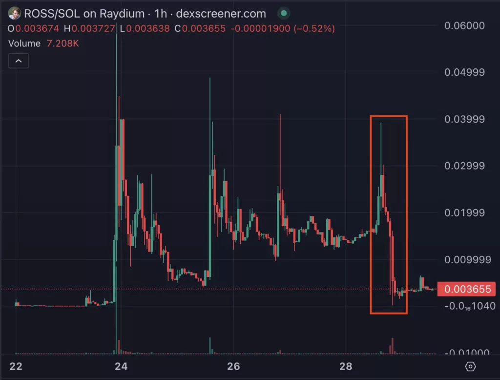 Создатели ROSS отправили на адрес Ульбрихта 50% общего предложения мем-коина. MEV-бот продал 80% из этих монет за немногим более $600 000, обвалив курс актива на ~90%.
