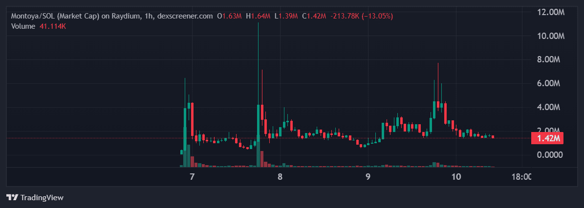 В моменте капитализация актива пробила отметку в $11 млн, но затем рухнула. При подготовке этого материала она опустилась до $1,44 млн: