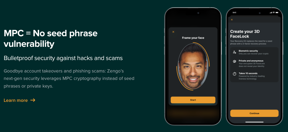 ZenGo заявляет, что использует криптографию MPC вместо сид-фраз или закрытых ключей. Источник: ZenGo