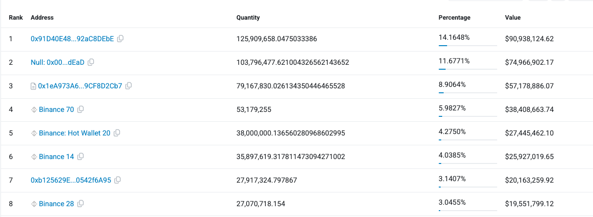 Адреса восьми крупнейших держателей OM. Источник: Etherscan