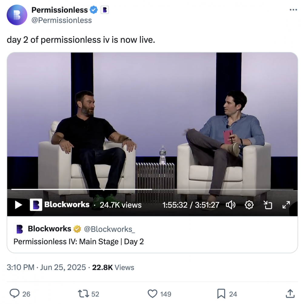 Зак Фолкман, слева, разговаривает с Джейсоном Яновицем из Blockworks. Источник: Permissionless.