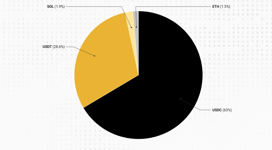 На основе более 1600 ответов из 77 стран аналитики зафиксировали устойчивый переход к расчетам в блокчейне. При этом лидером по доле в выплатах стал стейблкоин USDC от Circle, на который приходится 63% всех зафиксированных транзакций. Это больше, чем у Tether (USDT), хотя последний остается крупнейшим по объемам торгов.