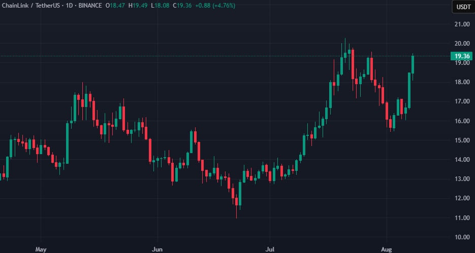 Чтобы обеспечить прозрачность Chainlink Reserve для сообщества, команда проекта создала аналитическую панель. Отметим, токен LINK отреагировал ростом на эту новость. На момент написания актив торгуется выше $19,3:
